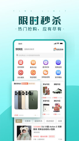 1.【限时秒杀】聚合主流电商秒杀抢购商品,全网商品一网打尽!