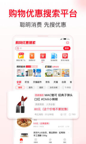 3.直接搜索:需要什么一键搜索,所有优惠商品和现金券都在这里。