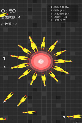 2.游戏操作简单,玩家一指就能轻松体验游戏。在游戏中,玩家要做的就是不断地收集飞刀,击败比你弱的对手,成功地活到最后。