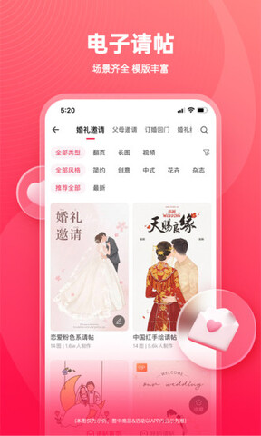 3.婚礼请柬,多个精致模板供您选择,微博微信多平台发送,快速告诉亲朋好友你的好消息。更多的微信墙功能,婚礼互动,手指可以玩。