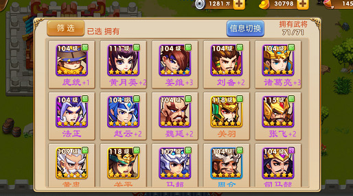 1.阵法策略自由搭配,采用经典回合制战斗场景,招募名将,施计布阵,海量装备随意选择,由您完成三国霸业。