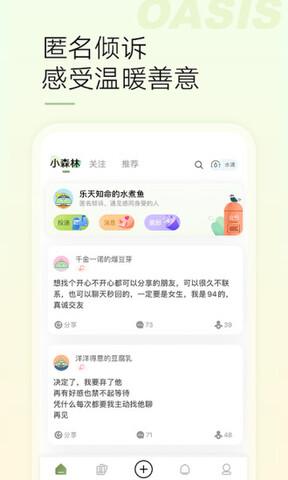 绿洲app建立一个关注生活分享和寻找同样兴趣的人的时尚社交产品的朋友圈。鼓励用户通过图片分享,推荐的话题包括“今日穿搭”、“旅行奇遇”和“爱心早餐”。绿洲app除了发布图片和文字,用户还可以在微博上标记位置和同步操作。与朋友互动,用户可以留言并转发到微博、朋友圈、qq空间或海报生成等。还能展示独特的品味,分享更多的生活故事,更好地陶冶每个人的情操。提高每个人的审美水平,实现更好的社交应用。