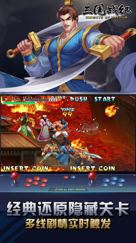 三国战纪是一款非常经典的三国主题动作街机格斗游戏。游戏以三国为背景,游戏性丰富有趣,人物场景刻画得淋漓尽致。游戏包含了中国古典文化的丰富多彩风格,每个著名的将军都有自己独特的技能,宏伟的战斗场景和精美的动画技能特效,给你一种超级酷的战斗体验。三国战纪中,玩家可以在游戏中看到很多熟悉的三国时代人物,可以根据自己的喜好选择将军,灵活控制自己的将军在动作格斗中躲避或挡住敌人的攻击,同时也需要找到合适的时间对敌人发起进攻。感兴趣的玩家快来下载三国战纪,重温经典吧!