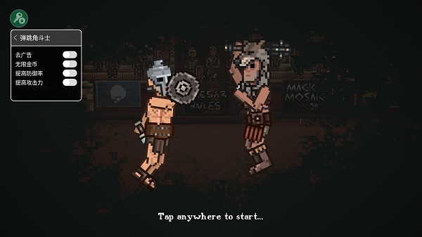 弹跳角斗士是一款古怪的2d物理格斗游戏。游戏背景设置在罗马城市,作为游戏中的角斗士,玩家需要击败对手才能获胜。弹跳角斗士游戏极其轻巧,不占用太多手机内存,画面非常独特,采用复古的像素风格设计,向玩家展示了一个独特的古罗马战场,给玩家带来了不同的视觉体验。弹跳角斗士游戏也很丰富,玩家可以搭配各种武器装备,使用各种战斗方法,然后通过简单的指尖操作,可以欣赏到精彩激烈的对抗,体验到战斗带来的畅爽感。感兴趣的话,快来下载体验吧!