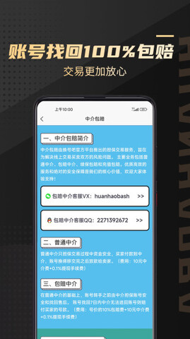所有商户账户均享受免费包赔服务,无需额外购买包赔,支持支付宝、微信等交易方式。