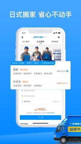 蓝犀牛搬家app是一款价格实惠的搬家服务软件,专为广大家庭企业用户量身打造。该软件拥有普通搬家、日式搬家、办公室搬迁、长途搬家这四种模式,能够根据用户的不同需求提供合适的搬家服务。除此之外,这款软件还具有叫车快、价格优惠、安全可靠等特点,还可根据选择的车型预先知道价格,搬家总费用都是非常透明的,只需要用户先在手机定位下单,蓝犀牛搬家app里会显示收费总费用,并说明收费标准,不会有临时坐地起价的情况,线上支付即可,非常的方便。