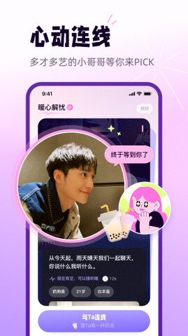 在线实时语音,不同风格的语音房间等着你加入。打开这扇门,社交恐惧完全不用担心沉默。多才多艺的小哥哥在等你聊天!在这里,你可以释放自己的生活压力,抛开烦恼,回归真实的自己~