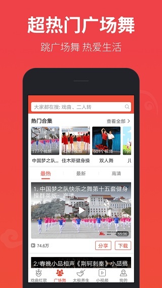 戏曲多多是一款专门为中老年人设计的影视娱乐软件,可听京剧秦腔、相声评书,观看最新的广场舞蹈教学,学习太极拳和经典老电影等。该软件包括京剧、二人转、黄梅戏、豫剧等内容,资源丰富,支持全屏播放,是陪伴你闲暇时光的好选择。戏曲多多主要是老年人和中年人比较喜欢的,因为有你妈妈最喜欢的广场舞百科,还有你奶奶、爷爷等最喜欢的戏曲。戏曲多多的界面超级简单,没有任广告,是免费使用的,操作很简单。有需要的用户,欢迎前来下载!
