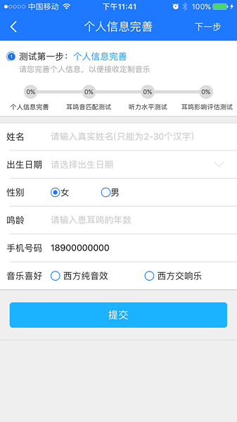 2.耳鸣患者完成耳鸣在线诊断,输出完整的耳鸣报告,只需等待几个工作日,即可在线获得海外技术专家团队量身定制的个性化音乐。
