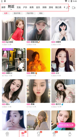 1、附近的直播:看附近的直播,找到身边的朋友。视频化,聊天更真实。