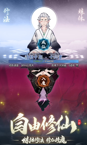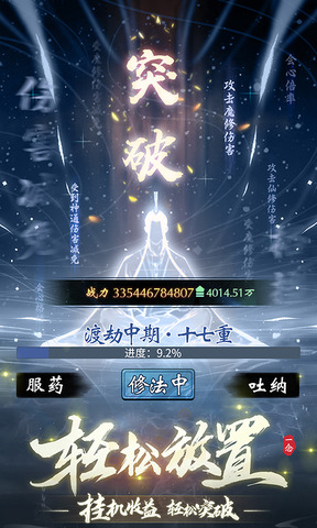 2.下载后,玩家将扮演修仙者,是一直保持着修炼的状态,等待真气满满,万事俱备时回来突破,成为位面上的仙人。