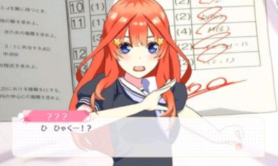 五等分的花嫁手游最新版是一款好玩有趣的恋爱角色养成类游戏,完美还原了动画的剧情,拥有有趣的玩法和海量的关卡等你来下载体验。在五等分的花嫁手游最新版游戏中玩家需要扮演男主角,与五位美丽的少女进行约会互动,不断提升女孩对自己的好感度,根据自己的选择来改变剧情走向。感兴趣就快来下载游戏体验吧!