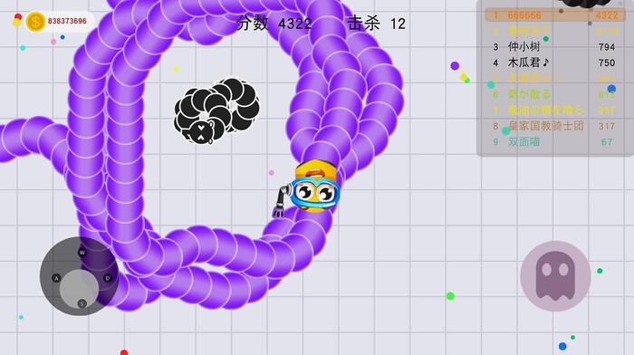 3、有时需要长按加速键,用巧妙的走位让蛇身撞上别人,然后就可以吃掉它们了。