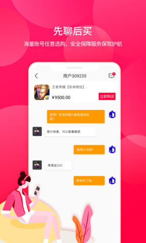 淘手游是一款超正规的游戏交易平台app,在这里进行游戏账号交易,交易非常安全有保障,而且这里的每一笔交易都有法律效力,每天都有数百万笔交易,每一笔交易都是真实有效的账号,买卖玩家可以直接在平台上进行私聊对接,真实安全无毒,玩家可以直接下载使用!