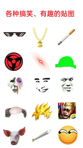 1.内置各种好玩、搞笑的素材,让用户可以制作独特的图片呈现自己的个性。