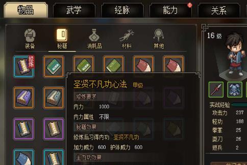 3.武术技艺有拳、掌、剑、矛、棍等100多种,可内外结合,成为横坡剑的大师,掌握百家之术。