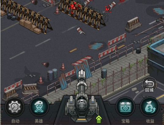 3.游戏操作相对简单,人物的移动方式可以通过滑动摇杆来掌握。下载后,游戏页面底部有自动英雄宝箱和收入四个选项。