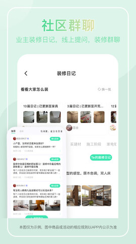 3.可以在社区版块进行交流、发帖,更加了解各种装修新知识,也能够互相针对装修问题解答疑惑。