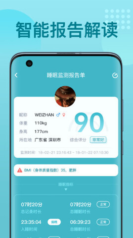 1.多维全面的睡眠报告,如心率、血氧、打鼾、体位、体温等。