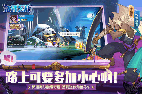 2、在路上收集组合英雄、事件和任务,在战场上进行三板对决,体验测试。