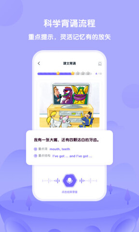 2.同步听说,教材同步课文听读跟读,提供单词级的即时反馈,细化训练颗粒度。