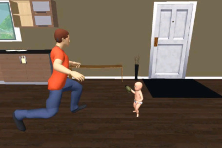 3.下载的游戏规则很简单,由于是1V1游戏,游戏速度非常快,父亲必须尽力防止儿子自杀。