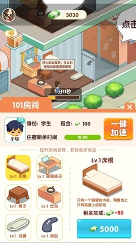2.以租房小店经营为主要玩法,玩家要管理自己的店铺,装修房间、收租金、招募房客、升级店铺以及提供高质量的服务。
