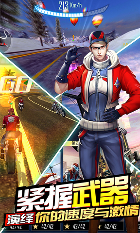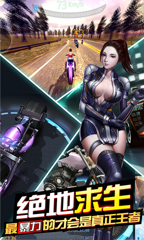 绝地摩托是一款摩托车竞速类的格斗游戏。在游戏中,玩家将驾驶着摩托车,体验到不同的驾驶感觉,随着比赛场景的不断变化,玩家展开一场生动而又刺激的格斗竞赛,极速驾驶带来的强烈冲击感更是让人难以忘怀。绝地摩托游戏拥有高清精致的3D场景和丰富的内容,让玩家可以在游戏中使用各种武器和独特的战斗技巧。喜欢的玩家,就来下载体验吧!