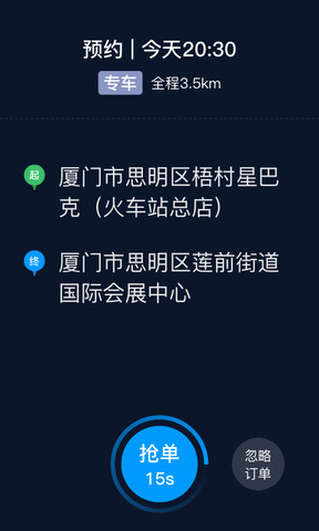 1、系统推送即时预约订单,用户可以抢订单或忽略订单;