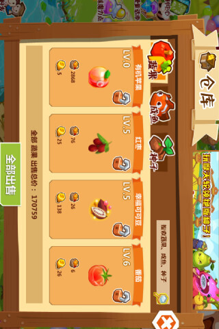 3.等我们的果实成熟了我们即可点击手型工具收取果实,会自动存放到我们的仓库。