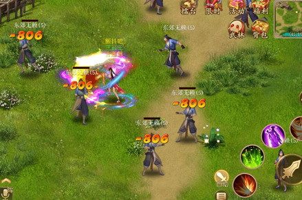 2.野外即时遭遇战斗,百人同屏,自由PK,尽享江湖热血。
