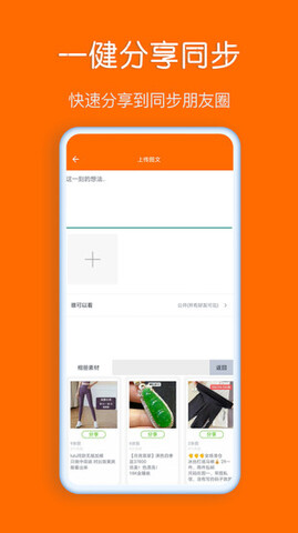 3.一键快速与朋友圈分享素材图文,有效解决朋友圈折叠成一行。
