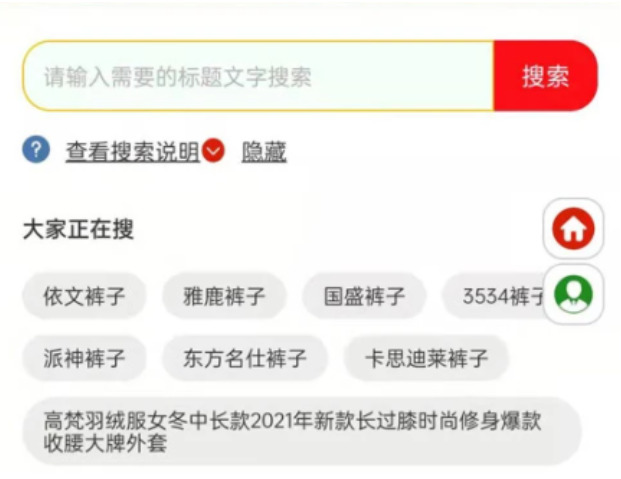 1.【产品搜索】在这里,用户可以搜索你喜欢的产品,或者粘贴产品标题搜索,盖住衣食住行。