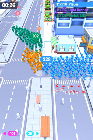 2.非常简单的游戏,不断地收集散落的人群,扩大你的组织,吞噬其他玩家的人群来获得力量。