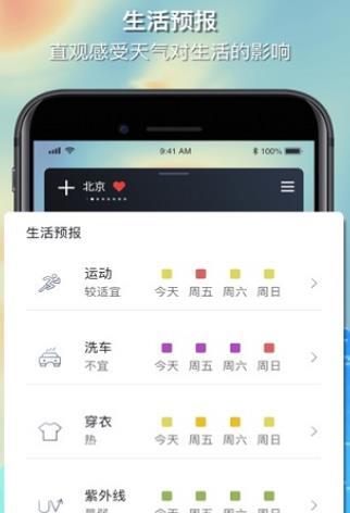 2.根据当地天气情况提供个性化的生活气象指数,如穿衣指数、污染指数、舒适度指数、紫外线指数等。