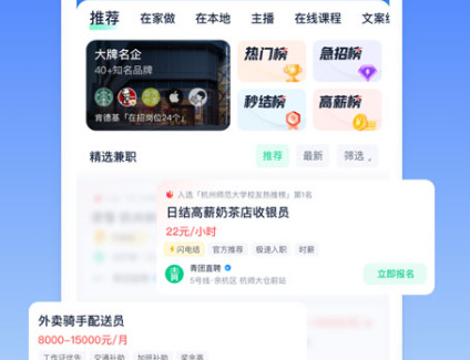 1.面向大学生用户,提供大量校内校外兼职岗位和实习机会。