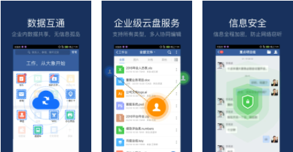 1.随时随地沟通:移动办公室畅通沟通,支持跨企业群建设。