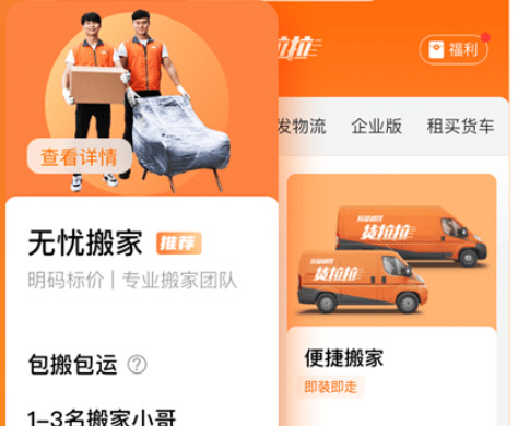 4.提供丰富的服务选项,包括家庭搬家,商业搬家,长途搬家等,用户可以根据自己需求选择。