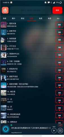 搜云音乐是一款非常优秀的音乐播放软件。软件拥有丰富的音乐资源,用户无需付费就能下载所有歌曲。该软件提供无损音质,为用户带来最高质量的服务,同时还支持切换主题,享受最佳的使用体验。搜云音乐的音乐资源非常丰富,用户可以听到各种不同风格的音乐,而且所有的音乐都是免费的,不收取任何费用。喜欢听歌的用户,来下载吧!