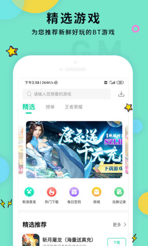 2、热门bt手游5000多款,bt游戏礼包,gm游戏公益服免费领取。