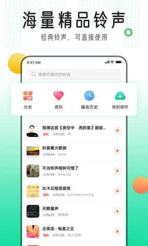 1.软件有多种铃声分类,用户可以更快地找到自己喜欢的铃声。