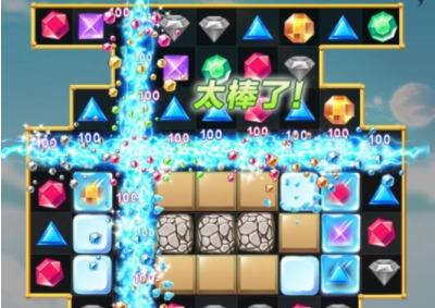 3.在游戏中,需要匹配3个或3个以上相同且相邻的宝石才能消除,消除的分数越多。