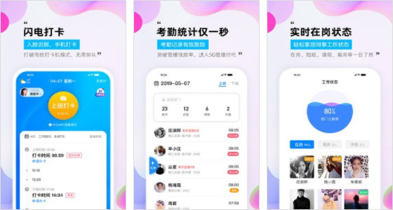 3.闪电式打卡:办公WIFI下手机打卡,快捷方便。