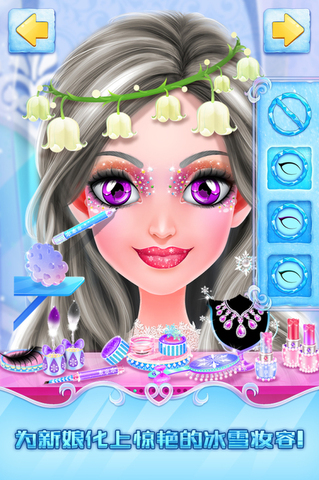 设计一个奇妙的冰雪婚礼殿堂,给公主穿上绝美的婚纱,尽情享受整晚的舞蹈盛宴。
