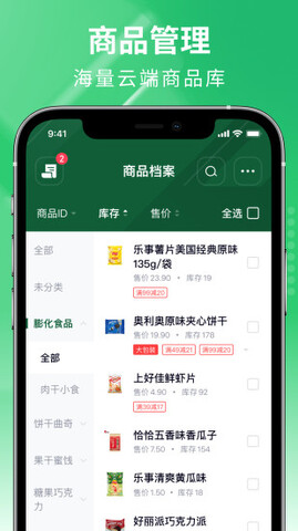 1.商品管理:百万云库商品资料,资料输入更加方便,大小包装自由转换,智能补货功能,使商品管理更加轻松。