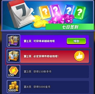 1、新手7号签到必得传说炮塔炮塔