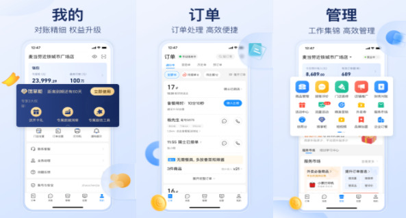 无论是在家还是在外,商家用户都可以通过手机软件轻松地管理店铺,随时随地查看订单状态和店铺情况,提高管理效率和服务水平,增加经营收入。