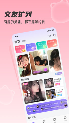 趣咪约玩是一款社交语音连麦的APP,提供多人即时连麦语音聊天的功能,让你和志同道合的人一起享受更有趣和更新鲜的玩法。就像一只有趣的猫咪陪伴着你一样,这个APP也能让你不再孤单。下载趣咪约玩app,你可以结识更多有趣的人,甚至还可以寻找游戏陪玩,有更好的游戏体验。所有信息都经过严格的审核,真实可靠,为用户带来来自世界各地的优质好友!