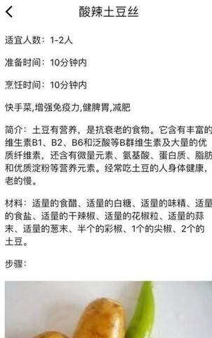 3.提供美食菜谱,还提供食谱、养生、健康等信息,更好的了解食品的营养成分和保健时运作效果。