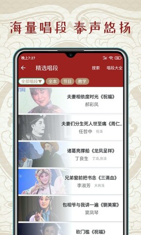 3、软件可以为用户提供大量的经典曲目,名家选段,通过实时在线播放,让您体验不同的感受。